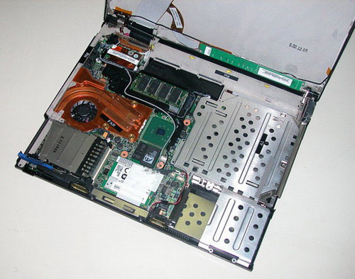 答:这是必然的,一英寸的厚度意味着内部结构必须采用叠加的方式设计,但是在面积和高度上也必须要达到平衡点,不能因为叠加影响到散热结构的效果,就如同人穿衣服一样,一件件的衣服套进去,不能错位,否则穿上可能就非常不舒服。由于T40在功能上相对过去的产品更为复杂,新的处理器、新的芯片组、新的无线网络模块、新的USB2.0支持,这意味着在整体布局上相对过去的产品会更为复杂,我们必须要一层层的去理清,达到最好的排列效果,而且我们还要注意内部元器件之间的干扰,譬如无线网络模块对于音频模块的干扰就是一个问题。