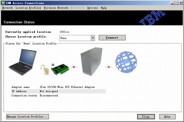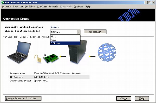 在现今网络已经深入到普通电脑使用者工作生活的各个方面,很难想象没有了网络我们用电脑还能干什么。不过作为笔记本这种移动设备需要经常在各种网络环境下使用,由于各个网络环境下的具体设置不同往往我们携带着笔记本从一个网络环境到另一个网络环境的时候要对笔记本进行重新的配置,而这个配置过程又是非常繁琐的。如果有一款软件能为我们设置不同的网络配置那该有多好啊!而IBM Access Connections就是一款能为我们自动设置的软件。IBM Access Connections采用了配置文件的形式为我们自动设置不同网络环境所需要的诸如IP地址、网关、连接模式以及用户名密码。用户只要设置好了不同的配置文件就能在不同的网络环境下使用进一步提高了使用笔记本的效率。