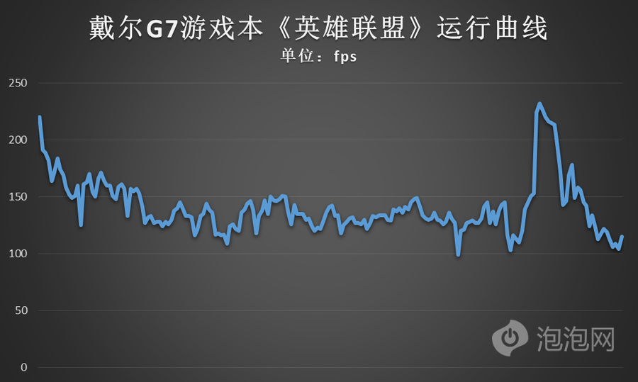 曾经火遍大江南北的英雄联盟,虽然经历了游戏的爆发期,逐渐走下神坛,但目前LOL这款游戏仍是日均在线人数非常多的一款竞技类游戏,我们选择从水晶处开始计算帧数。通过游戏中的帧数变化我们发现,在最高画质下,使用戴尔G7笔记本对《英雄联盟》这款游戏进行测试,得出的平均帧数在137左右,远远大于60的基本帧数。