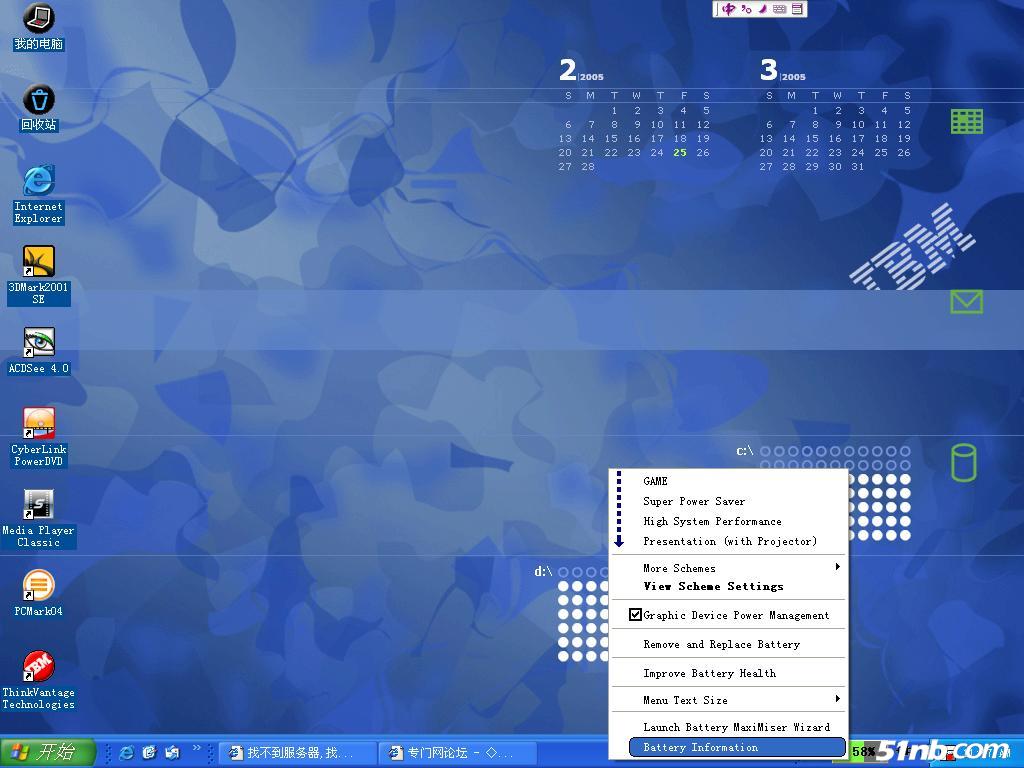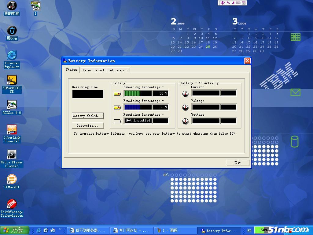 下面引用由bcjone在 2006/02/08 12:50pm 发表的内容: T30的BATTERY MAXIMIZER怎么没有电池校正阿,楼主的版本能不能给我一份阿