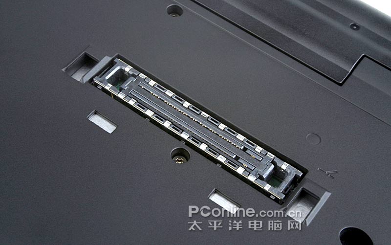 底部仍有功能非常全面的扩展接口,通过ThinkPad提供的不同的选件,可以提供不同的扩展方案,比如可以扩展成一个端口复制器,或者一个ThinkPad Advance底座。它们都可以提供更多的接口类型,甚至还可以进行基于PCI-Express接口技术的第二块显卡的扩展,基本上可以达到与桌面机型一样丰富的扩展功能。用户可以根据自己的实际需求,来选配这些扩展选件。无论用户选择什么样的扩展方案,都可以得到相当全面的功能是这个扩展接口的主要意义。