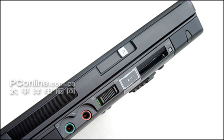 Z60的接口不管是数量上还是布局,可以说解决了长久以来部分用户对T、R系列的不足情绪,T系定位于商务用户,集中意见反映最大的是,最为常用的USB接口只有两个而且叠加放置在左侧面,给日常使用带来一些不便。在Z60上面,根据Z60的定位用户群,USB接口的位置与数量有比较大的变化,另外加入了一些新的接口类型,比如SD读卡插槽,不过也去除了传统的打印并口。来看看各个侧面的接口情况: