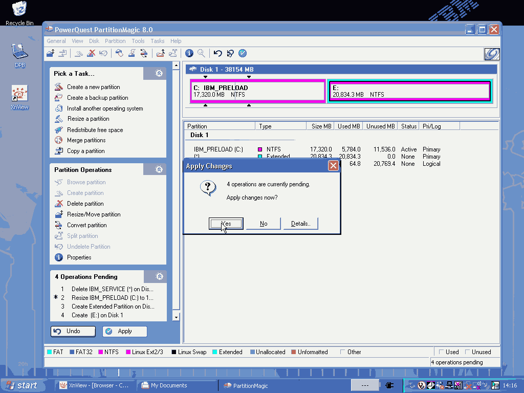 IBM系列机型官方都不提供安装光盘,而用硬盘上一个隐藏分区来恢复系统,名曰一键恢复技术。客观来讲,用隐藏分区的好处是操作简单、不需要临时找光盘,缺点就是时间太长(干等2hr)、恢复出的系统太乱(好多乱七八糟的软件)、而且占用很大一块硬盘空间。在我们有了光盘或者系统镜像ghost的情况下隐藏分区变得不是那么必要,所以可以将其删除。下面我来介绍如何用PowerQuest PatitionMagic 8.0(简称PQ Magic,PQ)来删除隐藏分区和对硬盘进行分区操作。