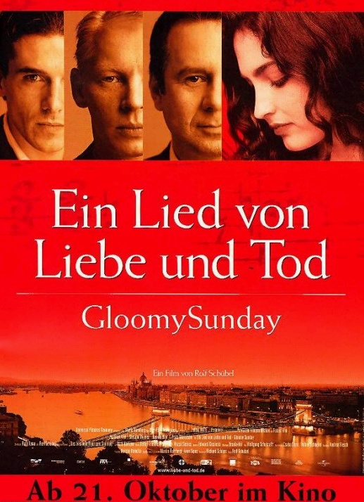 andras专门为爱伦娜写了这首著名的gloomy sunday。是只有名字而没有歌词的钢琴曲。世界在悄然变化了。面对这首充满绝望的歌,不仅仅他们三个人,而是所有听过这曲子的人都想从中找出旋律里隐藏的含义。乐观的人因此而与生活斗争,存活下来,而绝望的人,在旋律中自杀。歌曲被录成唱碟后的三天内,五个人自杀了,无不是在放着gloomy sunday中死去。其中还有一个曾专门到餐馆聆听、gloomy sunday的富贵家庭的漂亮女孩。也在同时,andras几乎完成了歌词创作。自杀的新闻不断传来,他越发深陷自责内疚的痛苦中。事情到此还不是终点。一个德国军官,走进这个稳定的三角地带,平衡被打破,忠贞受到了威胁。作为当地(当时德军已占领该餐馆所在的城镇)的长官,hans,这个拥有着权力的男人,凌驾在生命与死亡之上。他被gloomy sunday 吸引着,更爱上了迷人的爱伦娜。一次偶然事件,hans送爱伦娜回家。hans忍不住一诉衷情并恳请和她一夜情。聪明的爱伦娜冷静的回应他:你说我是天使,那天使会做这些事情吗?hans语塞。他无奈转身而去,却在楼梯口碰上了刚要上楼的andras男人的嫉妒,高傲与自尊让hans假装出一幅胜利者的姿态,他故意扭着衣服扣子,似乎在向情敌暗示他刚和敌人的爱人上床。andras终于没有上楼,默默转身而去爱情的忠贞因为猜疑而受到暗伤。andras甚至跟踪爱伦娜去了hans的办公所在地,她其实是为了求掌握着生杀大权的hans帮忙把她的两个尤太爱人弄出匈牙利。andras在门外苦等57分钟。爱伦娜出来,激动的andras终于忍不住质问:你拥有两个男人还不够吗?!难道一个德国佬比两个尤太人还要强?!!侮辱伤害了爱伦娜,她狠狠给了andras一巴掌,冷战开始。