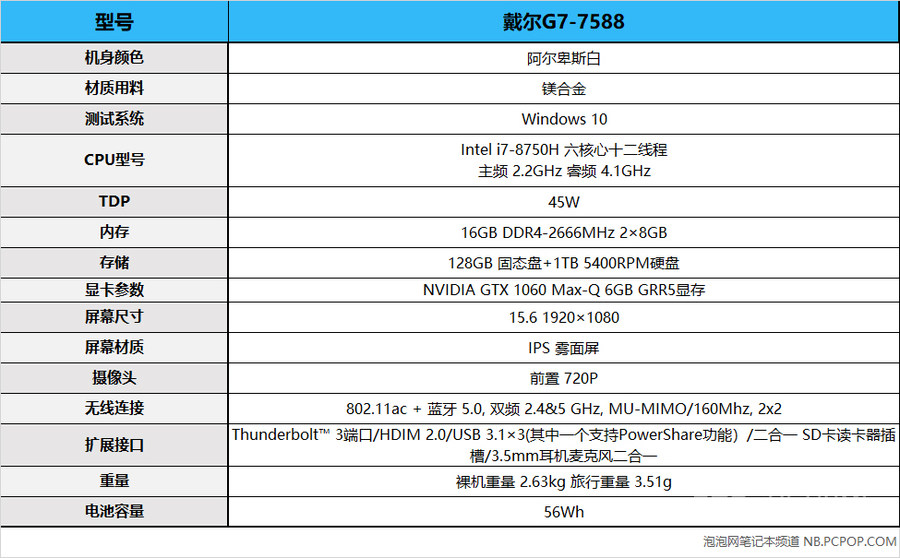 戴尔G7采用了英特尔八代i7-8750H标压处理器和NVIDIA GTX 1060 Max-Q独立显卡、16GB内存、258GB固态盘+1TB机械硬盘。这样的配置在游戏本中属于性能强劲的一款。前段时间戴尔G7系列还推出了配备了i9系列处理器的机型,如果用来玩游戏可能有点大材小用了。