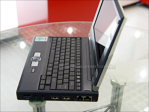 U100采用7.2寸WXGA液晶显示屏和超低电压的奔腾M 733处理器,具备2MB二级缓存,主频位1.1GHz,芯片组位855GME,配备256MB内存和60GB硬盘,60GB的硬盘容量十分不错了,迷你笔记本一般很少有配这么大容量硬盘的。U100内置56K MODEM和100M网卡,同时内置Atheros 802.11b/g无线网卡,正因为不是Intel的无线网卡,所以这款笔记本没有得到迅驰标签的授权,而只贴了奔腾M。