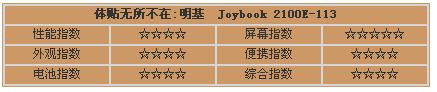 如果对电脑性能不是太苛求,平时又喜欢带着笔记本满世界转的朋友,可以留心这款Joybook。尤其是“林肯”式的同学——据历史说,林总统最不喜欢收拾东西了——可以买一台,因为它的摔跤能力实在太强。烧蝶宝宝或者电影一族,在选购之时,也不妨多留意此机。