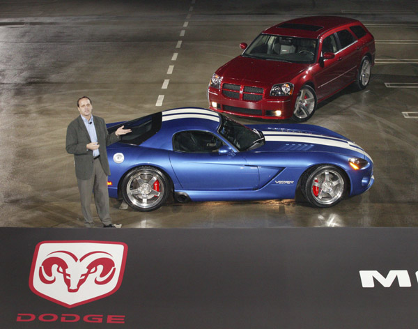 道奇副总裁Darryl Jackson说:“Viper无疑是道奇的性能旗舰,它是大街上最能吸引眼球的车型之一,它做到了3个500--500马力、500立方英寸V10发动机、525磅尺扭矩,还有紧固的悬挂和足以毁掉司机视网膜的刹车加速度。”