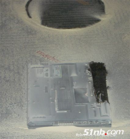 事件:ThinkPad突然着火,产生巨大“烟火”并持续燃烧15分钟--直至工作人员用灭火器扑灭ThinkPad。浓烟和恐慌过后,地上出现一台ThinkPad尸体,以及一个爆炸燃烧产生的,洞。