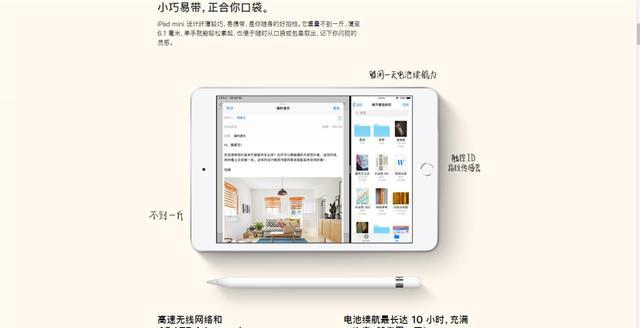 iPad mini 5支持Apple encil1代,所以1代Apple encil又迎来了它的第二春。数据显示Apple encil长度为175.7毫米,iPad mini 5长度为203.2毫米。也就是说iPad mini5的保护壳可以预留Apple Pencil的位置,大大提高了Apple Pencil的便携性,方便随时随地记笔记,画画。