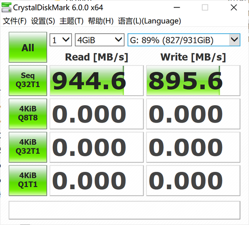 相比Surface Pro6所使用的酷睿i5-8250U,性能提升还是比较明显的。多线程和单线程成绩均提升了约20%左右。 SSD性能测试