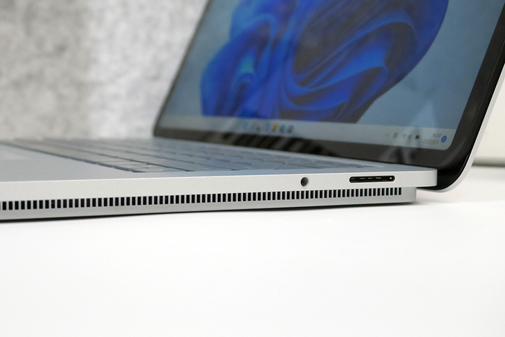 Surface Laptop Studio提供了两个雷电4 USB 4.0接口,另外一侧的是3.5mm耳机孔以及1个 Surface Connect 端口,这也是Surface的老传统。