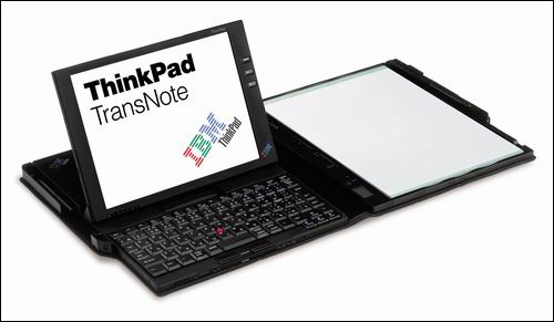 2001年2月,IBM公司在美国首先推出了这台设计上极其创新的ThinkPad TransNote,它的外观设计介于笔记本和Tablet PC的之间,而且外观甚至跟人类原始使用的“笔记本”极其相似,当时主要面向的客户是高端的商务办公人士。