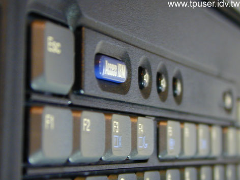 我們先來複習一下ThinkPad代代自豪的鍵盤吧,左圖是T43英文版鍵盤的全貌特寫。站長曾經在「T40介紹特集中」對於T40 鍵盤設計做過解釋,在此不贅言。雖然最近有廠商意圖搶食ThinkPad的商用市場,鍵盤上也有TrackPoint,但站長實際操作過的感覺是,撇開按鍵的觸感不提,其他廠牌對於按鍵的排列仍未非常講究。這點其實讓站長滿困惑的,既然要「抄」為何不把ThinkPad鍵盤的精髓學得像一點呢?如果連「七列按鍵」、「右上方六顆小按鍵(PgUp等)」都沒有,徒有TrackPoint豈不是低估了ThinkiPad鍵盤的努力,更別提ThinkPad在所有機種上都能保有的鍵打觸感。或許對其他廠商來講「成本」還是一個主要因素吧(苦笑)。