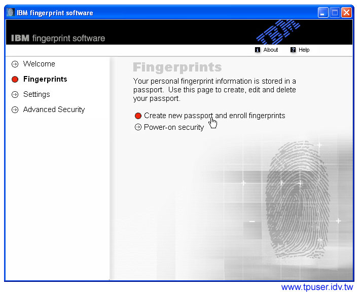 ThinkPad指紋辨識器能夠判讀雙手十指的指紋,使用者可以自行選擇。操作時其實只要把滑鼠移到每根手指上面去即可點選。