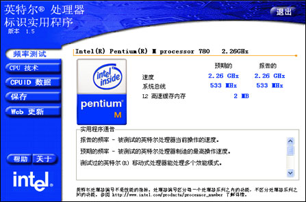 处理器 Intel Pentium-M 750 (1.86GHz) (2M缓存)