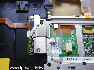 接下來幾張圖片是帶大家一覽ThinkPad T43內部構造。有關T40-Series各部功能在先前的ThinkPad T40介紹特集中已經有詳細的介紹,站長便不贅述了。僅就幾處變化較大的地方向各位說明。