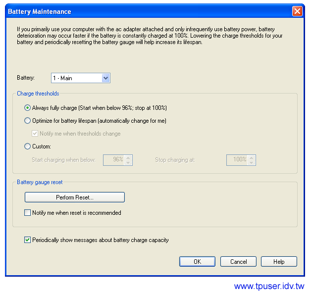 ThinkPad T40-Series共有三種電池可以裝配:
