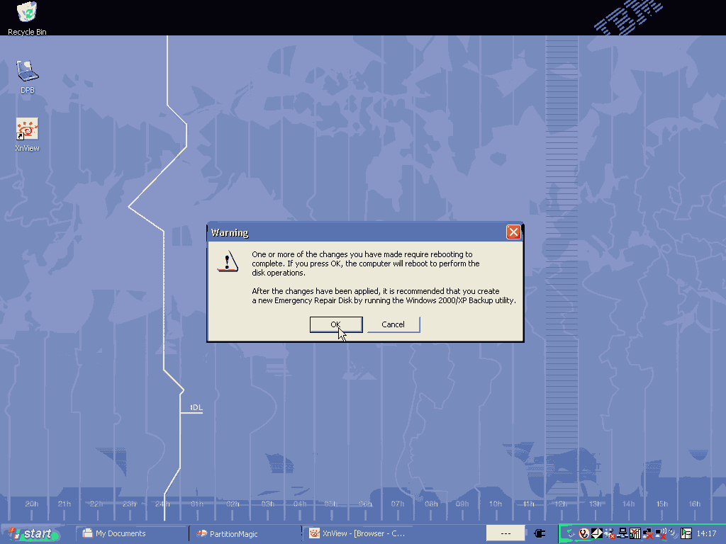 IBM系列机型官方都不提供安装光盘,而用硬盘上一个隐藏分区来恢复系统,名曰一键恢复技术。客观来讲,用隐藏分区的好处是操作简单、不需要临时找光盘,缺点就是时间太长(干等2hr)、恢复出的系统太乱(好多乱七八糟的软件)、而且占用很大一块硬盘空间。在我们有了光盘或者系统镜像ghost的情况下隐藏分区变得不是那么必要,所以可以将其删除。下面我来介绍如何用PowerQuest PatitionMagic 8.0(简称PQ Magic,PQ)来删除隐藏分区和对硬盘进行分区操作。
