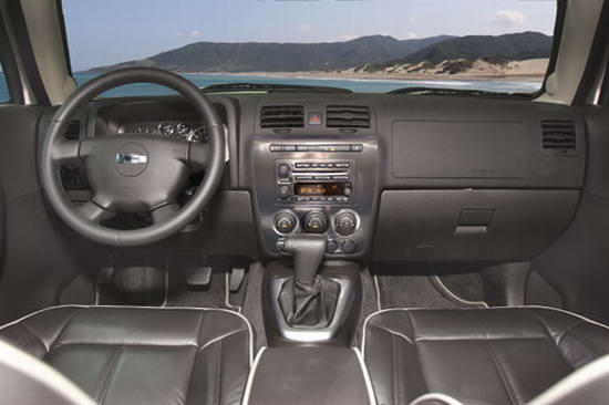 这辆H3选配了门坎护梁并提供踏板功能,车舱地板距离地面的高度达到60公分,如果没有踏板,想上车可能要先后退几步以方便助跑,这样讲可能夸张了些,但是应该可以让读者想象到我们第一次接触H3时的感受。坐进车内,车舱内部有着非常宽敞的空间,而且不如H2或H1那样夸张,当过兵且坐过悍马的读者们应该都非常清楚,悍马的驾驶座跟乘客座之间虽然没有座位,但感觉上至少有一公尺的距离,安静的时候讲话可能还会有回音。H2不如H1那样宽阔,但也至少拥有容纳一张小餐桌的空间,因此H3与前两款相比较而言,显得较为平凡,但其更合理的售价、适当的车身尺寸及车舱空间,反而大幅度提高消费者购买Hummer的意愿。