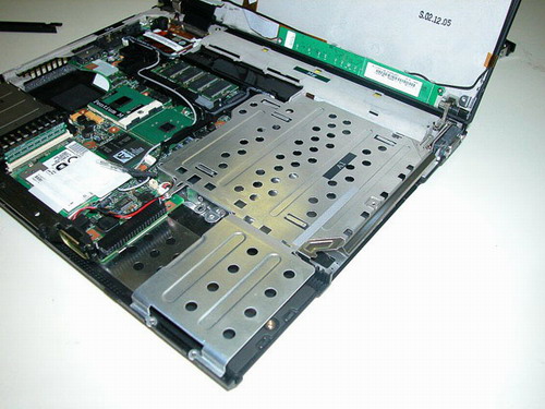 答:这是必然的,一英寸的厚度意味着内部结构必须采用叠加的方式设计,但是在面积和高度上也必须要达到平衡点,不能因为叠加影响到散热结构的效果,就如同人穿衣服一样,一件件的衣服套进去,不能错位,否则穿上可能就非常不舒服。由于T40在功能上相对过去的产品更为复杂,新的处理器、新的芯片组、新的无线网络模块、新的USB2.0支持,这意味着在整体布局上相对过去的产品会更为复杂,我们必须要一层层的去理清,达到最好的排列效果,而且我们还要注意内部元器件之间的干扰,譬如无线网络模块对于音频模块的干扰就是一个问题。