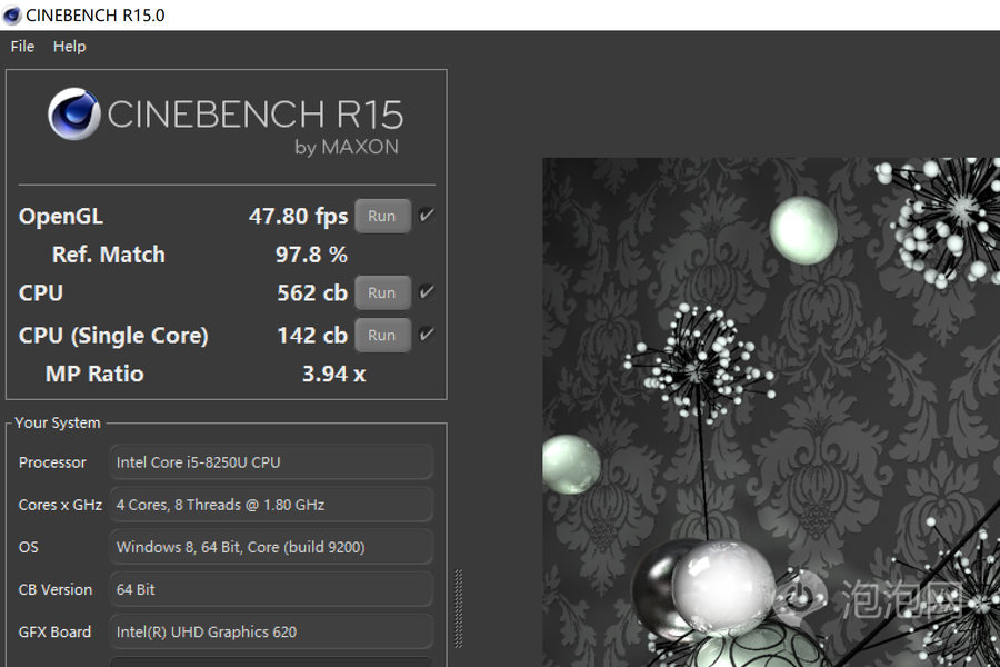 Surface Pro 6 的 i5 版采用了 i5-8250U 处理器,其基于 Intel Kaby Lake R 架构设计,14nm 制造工艺,主频 1.6GHz,睿频 3.4GHz,四核心八线程。使用 CineBench R15 进行测试,其最终单线程成绩为 142cb,多线程成绩为 562cb,表现属正常水平。