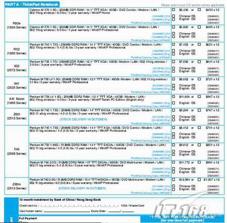 今年香港科技大学的THINKPAD学生机主要包括以下款型:ThinkPad R50e系列应用Intel Celeron M 370 1.5GHz处理器款型,香港市场行货价格10046港币,学生购机价格仅为5436港币;ThinkPad R52系列应用Intel Celeron M 740 1.73GHz处理器款型,香港市场行货价格10888港币,学生购机价格仅为7452港币;ThinkPad X32系列应用Intel Pentium M 735 1.7GHz处理器款型,香港市场行货价格11988港币,学生购机价格仅为7692港币;ThinkPad X41系列应用Intel Pentium M 758 LV 1.5GHz处理器款型,香港市场行货价格13988港币,学生购机价格仅为8652港币;