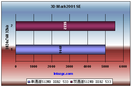 而在显示子系统的测试中,双通道DDR2内存展示了它的强大。915GM集成GMA900显示核心在高带宽的支持下,成绩得到了明显上升,这一点在随后的游戏测试中也得到了充分体现。