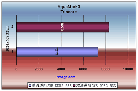 现阶段,双通道技术的价值完全体现在集成显卡的性能提升上。众所周知,集成显卡没有自带显存,需要从系统主内存当中划分一定空间充当显示缓存来使用,毫无疑问这也将占用一部分内存带宽。大家都知道,在独立显卡上,显存带宽是一项很重要的性能指标,显存带宽=显存频率×显存总位宽,对于集成显卡来说,它的显存频率实际上就是内存运行频率,显存位宽实际上就是内存位宽,因此,内存位宽的大小势必直接影响集成显卡的性能。