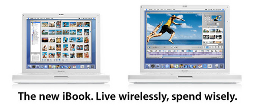 早在数月之前,苹果信徒就传言最新苹果的iBook将以宽屏亮相。然而,昨日新发布的iBook,却让谣言不攻自破。这两款新苹果iBook,只是增加了内存与无线技术,而没有使用宽屏。